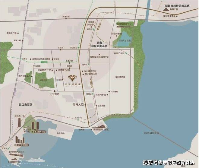 项目地处后海总部基地与蛇口传统豪宅区交汇处,左手执掌后海超级总部基地万亿级产业集群,已集聚招商银行、腾讯、大疆等20余家世界500强企业总部,未来将贡献深圳约20%的GDP;右手承接蛇口成熟豪宅氛围,居住底蕴深厚。同时占位后海大道城市发展中轴,紧邻规划中的世界级地标商圈,未来将集聚全球顶级消费资源,区位价值不可复制。交通路网立体便捷,地铁2号线海月站/湾厦站步行可达,2站换乘11号/13号线分钟覆盖福田、前海核心区;紧邻后海大道、滨海大道等主干道,30分钟通达全城;依托太子湾邮轮母港及深圳湾口岸,30分钟直达香港机场,跨境出行高效便捷。